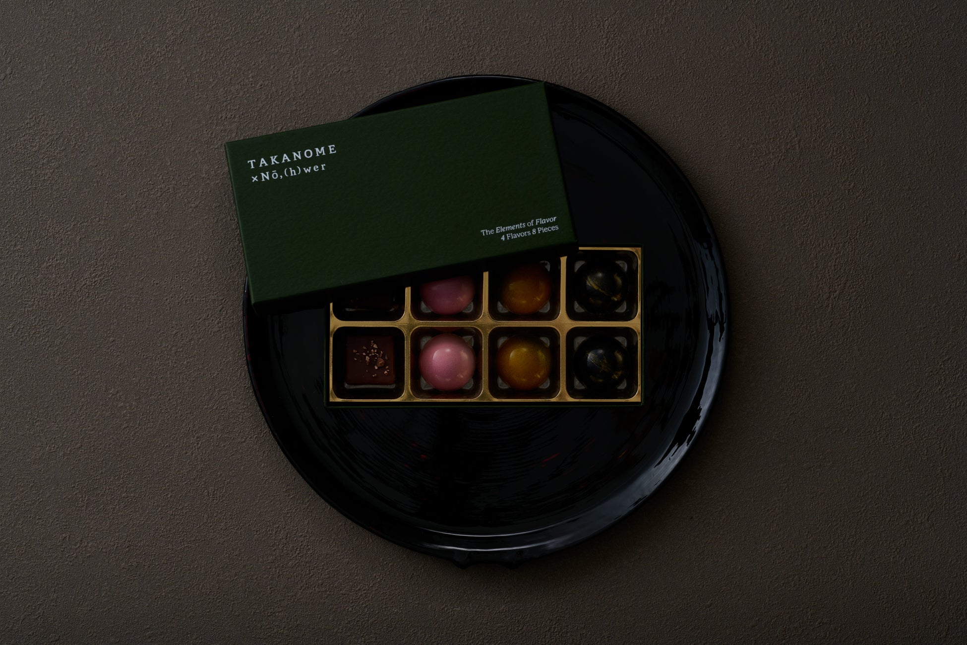 TAKANOMEは創業以来『日本酒を通した、文化の発展への貢献』というブランドの使命を掲げ様々な形で日本酒の可能性を探求してきました。「Nō,(h)wer」は、バーテンダーとパティシエという異なるバックグラウンドを持つ二人によって立ち上げられたチョコレートブランドで、カクテルやデザートの世界で培った、香り・温度・余韻への繊細な感覚を軸に、素材の個性を引き出す表現を得意としています。