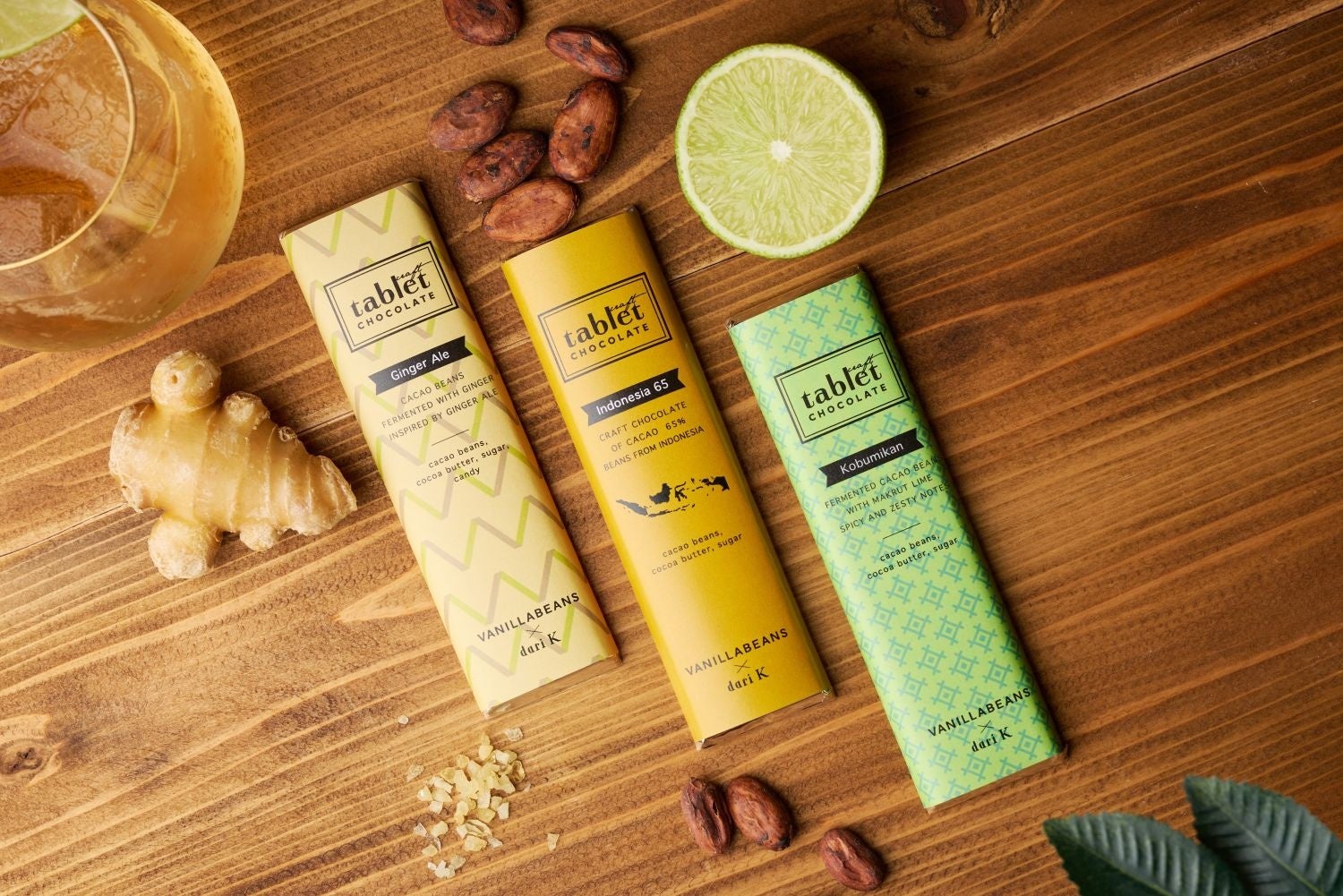 京都発のカカオ・チョコレートブランドdari K(ダリケー)とのコラボレーションにより生まれた、タブレットショコラ3種類をオンラインや一部店舗で販売中です。カカオ豆を発酵させる際にフルーツやスパイスなどの副素材を加え、副素材のフレーバーをカカオ豆に移すことでチョコレートの味わいに変化をもたらす発酵方法「特別発酵」を用いた、新作のチョコレートです。