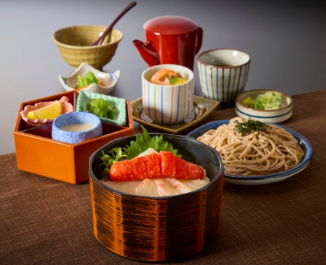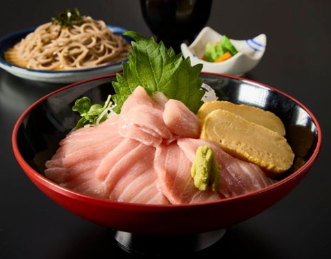 「まぐろの女王」と称される南まぐろ。その最高級部位である“大とろ”のみをふんだんに使用し、贅沢な素材を頬張る「丼」に盛り付けました。口に入れた瞬間、際立つ脂の甘みと濃厚かつ芳醇な味わいが広がり、とろけるような至福のおいしさが溢れます。サガミ自慢の蕎麦をセットでご提供しております。さっぱりと口を整えながら、“大とろ”の深い味わいをぜひ心ゆくまでご堪能ください。