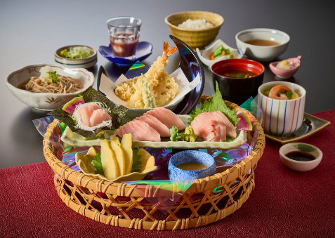 南まぐろ“大とろ”を、王道の刺身・芳醇なごまだれ・磯香る手巻きの三種の味わいでご提供。旬を告げる「筍のお刺身」やサガミ自慢のお蕎麦をはじめ、天ぷら、茶碗蒸し、小鉢、ご飯、漬物、デザートまで。多彩な料理が織りなす豊かな味わいを、ぜひ心ゆくまでお楽しみください。