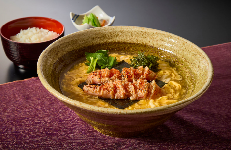 ふんわり優しく仕上げたとろとろの玉子あんが麺に濃厚に絡みつき、最後の一滴までお出汁の旨みを愉しめる一品です。直火で香ばしく炙ることで旨みを凝縮させた【食卓のやまや】の明太子。ピリッとした刺激と香ばしさが、優しい味わいの玉子あんの中でより一層際立ち、お出汁との味わいを引き立たせます。