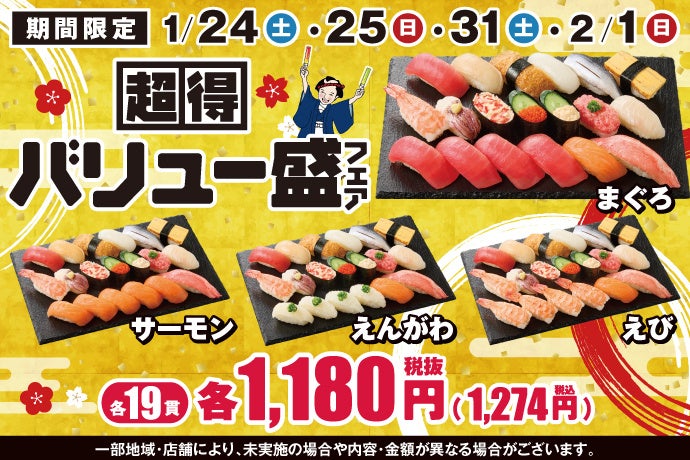 KOZOホールディングス株式会社の子会社である株式会社小僧寿しは、持ち帰りすし店「小僧寿し」にて、1月24日(土)~25日(日)、1月31日(土)~2月1日(日)の期間限定で『超得バリュー盛フェア』を開催します。(※店舗により未実施の場合がございます)