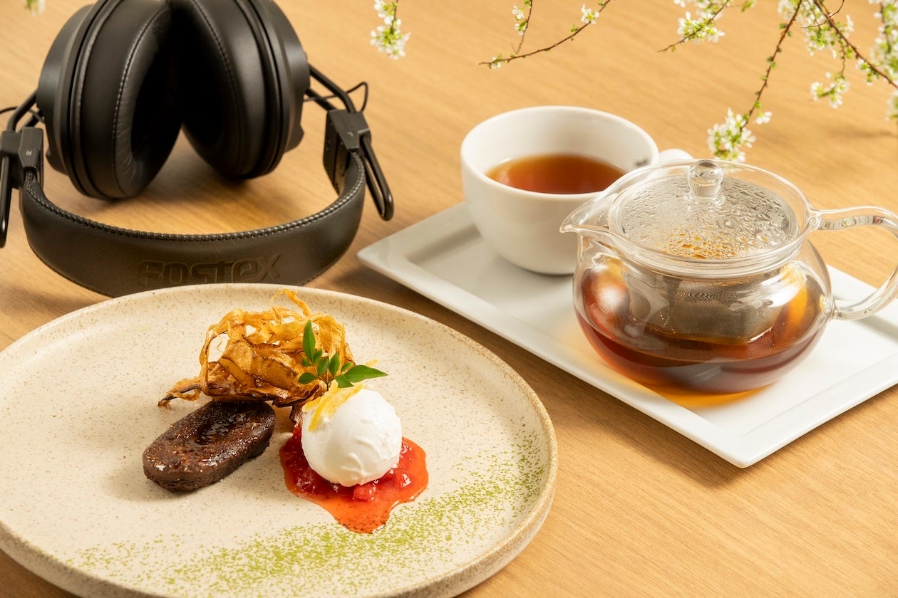 期間中は、TAICHIRO MORINAGA の「和みテリーヌショコラ」「薫ル TEA SELECTION」を用いた SiKiTO CAFE オリジナルメニューとともに、音楽・ナレーション・ヘッドフォン・タブレットをセットにした以下の体験型カフェセット(価格:¥1,595(税込))をご提供します。