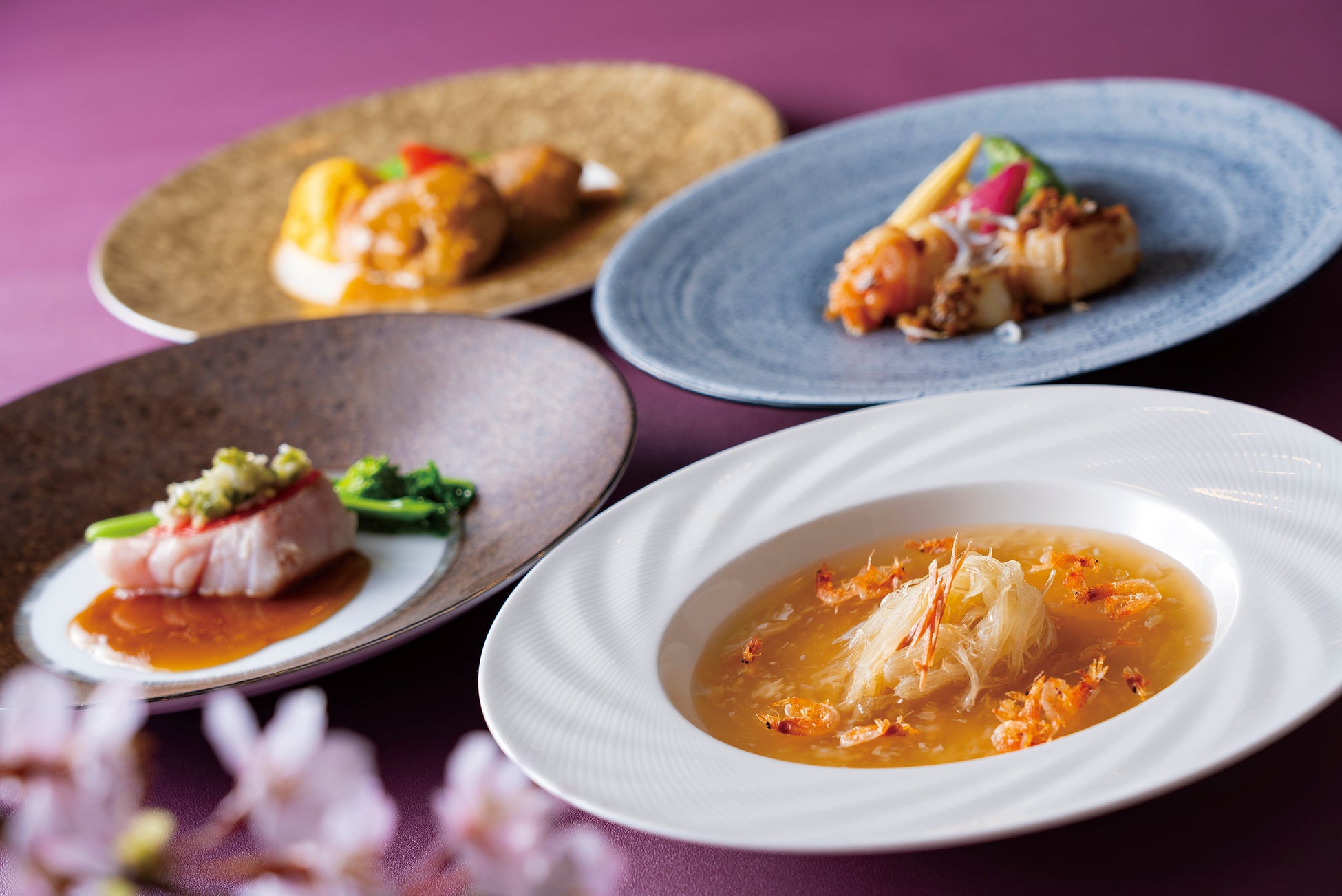 1971年のホテル開業と同時にオープンした中国料理<南園>。半世紀以上かけて築き上げた広東料理の伝統と革新の味に、春の食材の華やかさを添えた特別コース「櫻花満園」をご用意いたしました。特製点心が楽しめる平日限定の「飲茶ランチ」をはじめ、ハマグリや春キャベツなど滋味深い食材を味わうランチコース、北京ダックや金目鯛など、祝いの席にふさわしい食材を用いたディナーコースまで、多彩なラインナップを展開。中国料理統括料理長の李国超が腕を振るう、この時季ならではの味わいをこの機会にぜひご賞味ください。