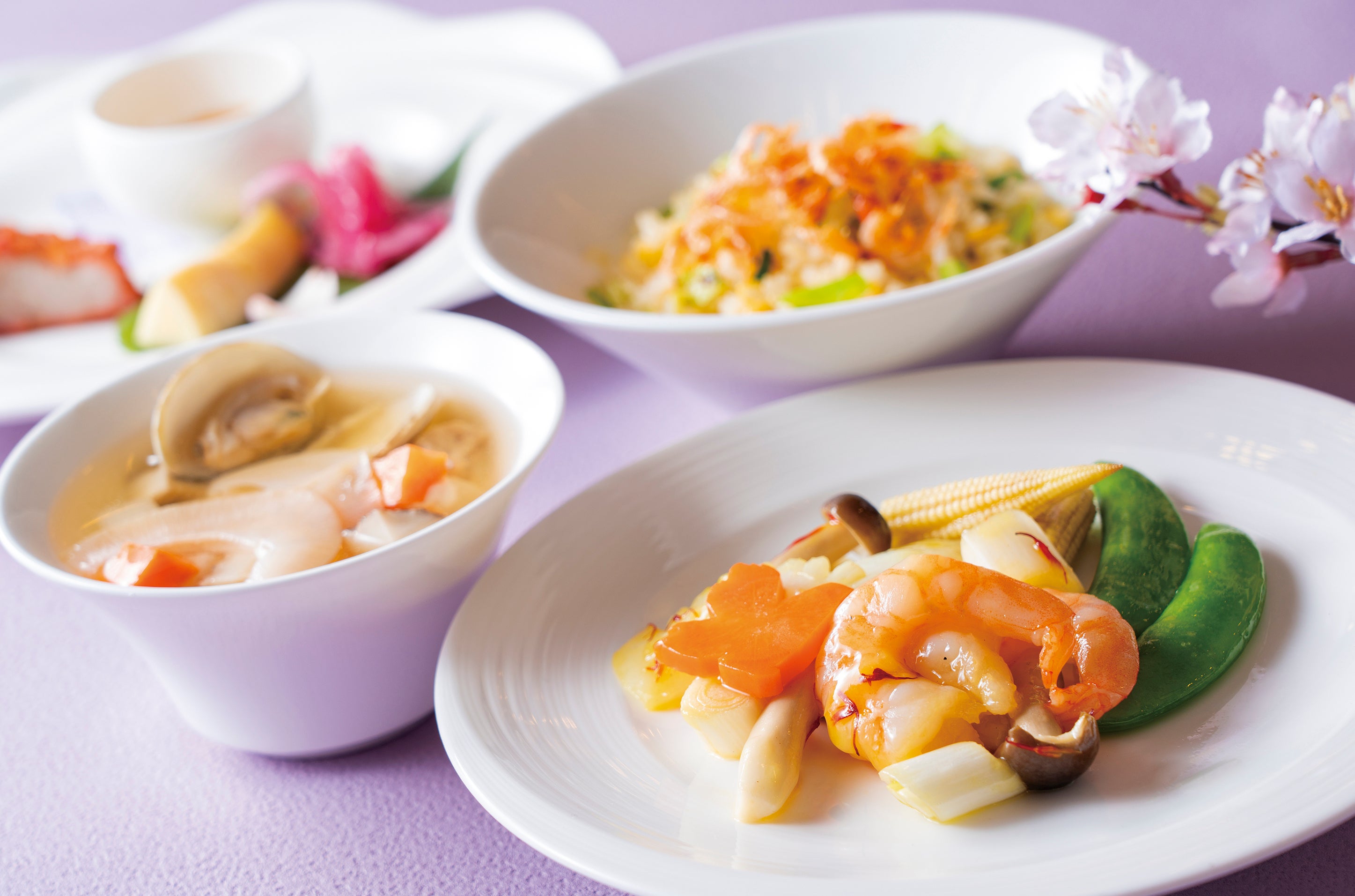 1971年のホテル開業と同時にオープンした中国料理<南園>。半世紀以上かけて築き上げた広東料理の伝統と革新の味に、春の食材の華やかさを添えた特別コース「櫻花満園」をご用意いたしました。特製点心が楽しめる平日限定の「飲茶ランチ」をはじめ、ハマグリや春キャベツなど滋味深い食材を味わうランチコース、北京ダックや金目鯛など、祝いの席にふさわしい食材を用いたディナーコースまで、多彩なラインナップを展開。中国料理統括料理長の李国超が腕を振るう、この時季ならではの味わいをこの機会にぜひご賞味ください。
