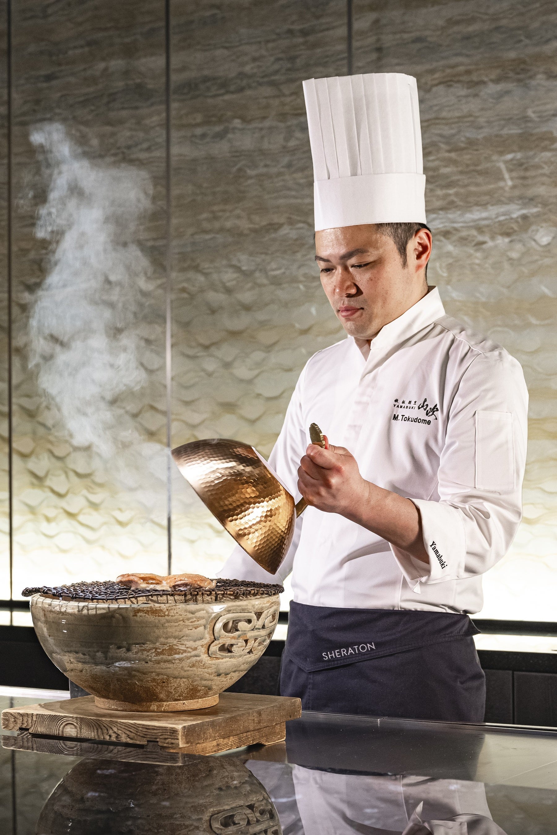 2004年調理師専門学校を卒業後、株式会社ロイヤルパークホテルに入社。シェフズダイニング シンフォニーや鉄板焼 すみだにて、料理人として多岐にわたる経験を積む。2008年には横浜ロイヤルパークホテルの鉄板焼 よこはまにて腕を振るい、2022年4月に同店の料理長に就任。2025年2月、鉄板割烹「山吹」料理長に就任し、素材にとことんこだわり“見ているだけで美味しい”と感じていただけるような技術とパフォーマンスで、全てのお客様に心に残る忘れられない時間を提供していく。