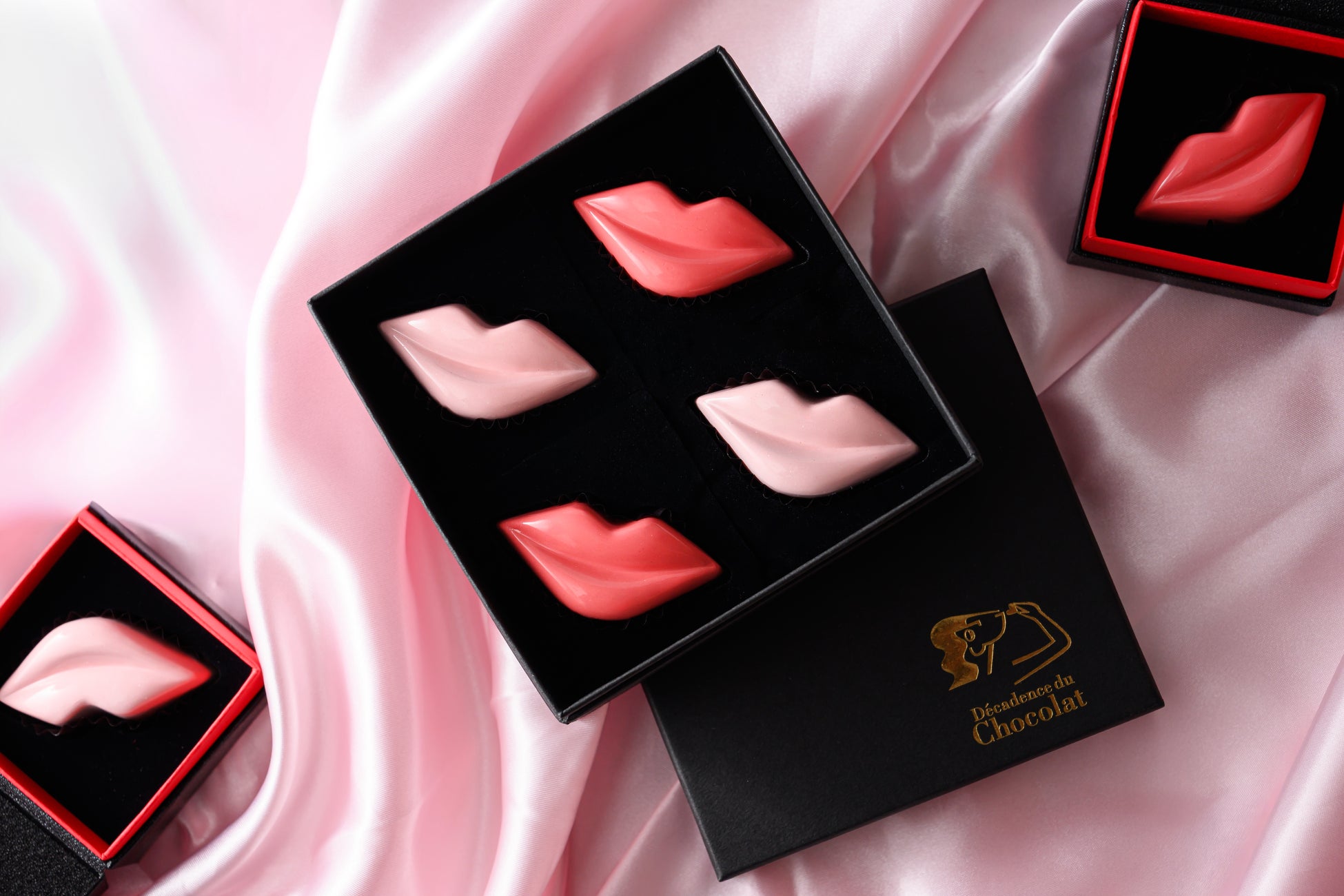 「DECADENCE DU CHOCOLAT(デカダンス ドュ ショコラ)」は、フランス語で「退廃」を意味する日本のチョコレート専門店で、2002年に代官山で開店し、日本に本格的なショコラ文化を広めることを目指しました。 「日常にショコラのある贅沢」をコンセプトに、厳選素材と職人の手作りによる高品質なショコラや焼き菓子を提供し、特にスペイン産オレンジをディップした代表作「バレンシア」が有名です。 理性を溶かすような快楽と芸術性を追求し、特別な体験を日常にもたらすことを目指しています。今回は、ブランドのアイコンであるリップ型チョコレート「ラブキス」を、バーニーズ ニューヨークのためだけに特別にアップデート。バーニーズ ニューヨークでしかお求めいただけない限定カラーの2種パステルピンクの「キャラメルショコラ」と、コーラルピンクの「プラリネショコラ」を、贅沢に詰め合せたセットをご用意しました。特別なカラーと味わいの共演をお楽しみください。