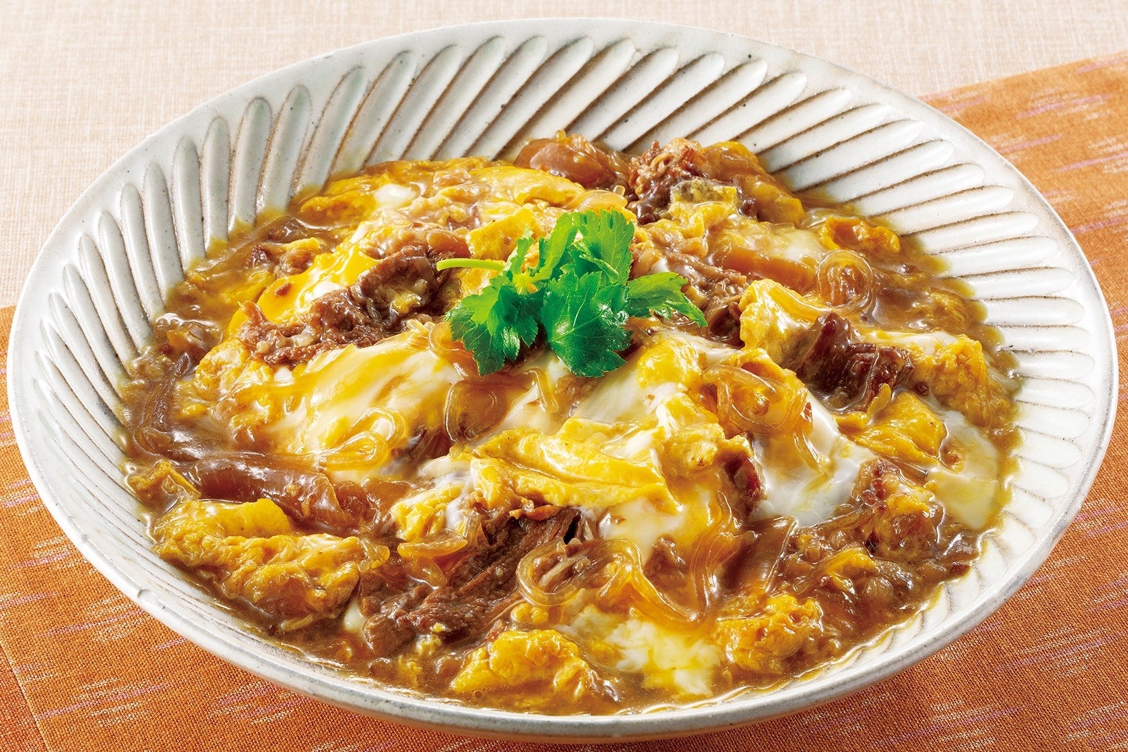 柔らかな鶏肉と玉ねぎに、鰹と日高昆布のだしを合わせ、卵でふんわりととじた親子丼の具です。