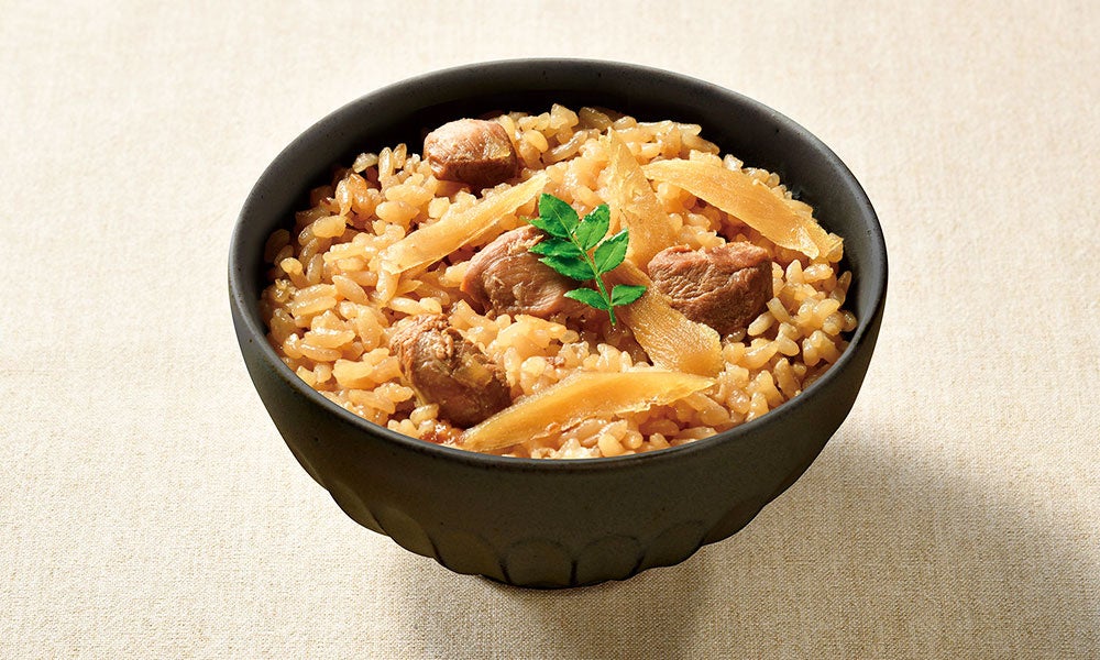 甘辛く味付けた具材を炊飯後に混ぜこむことで、ふっくらとしった鶏肉の食感をお楽しみいただけます。
