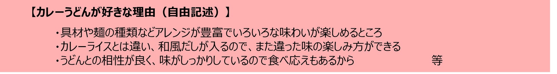 本調査の対象である「子育て世帯かつ料理を担当する30-40代」において、カレーうどんはカレー料理の中で、半数を超える高い喫食率であり、身近な選択肢であることがうかがえます。