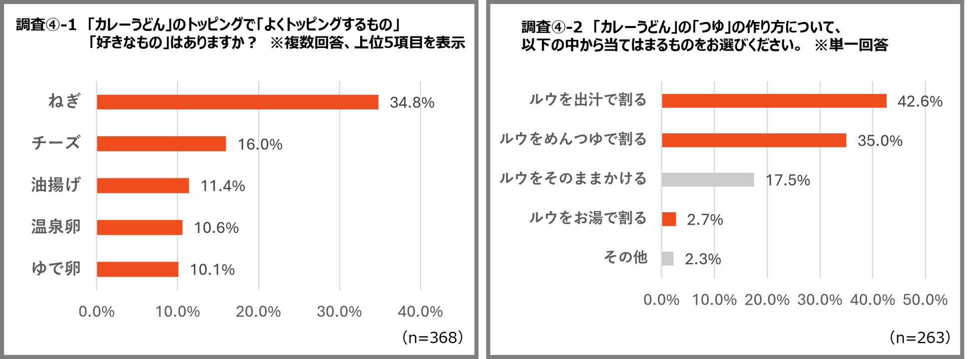 ・調査結果④-2:368名の中から2日目以降のアレンジで「カレーうどん」が好きと回答した人 263名が対象
