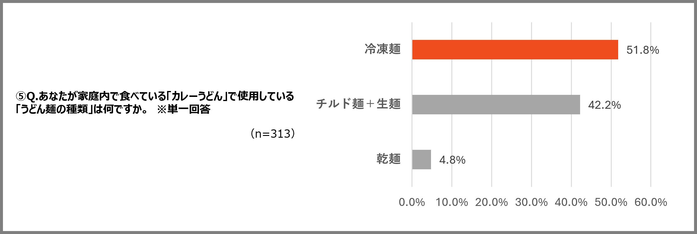 調査結果⑤ 翌日のカレーうどんに選ばれている麺は「冷凍うどん」が最も多い結果に