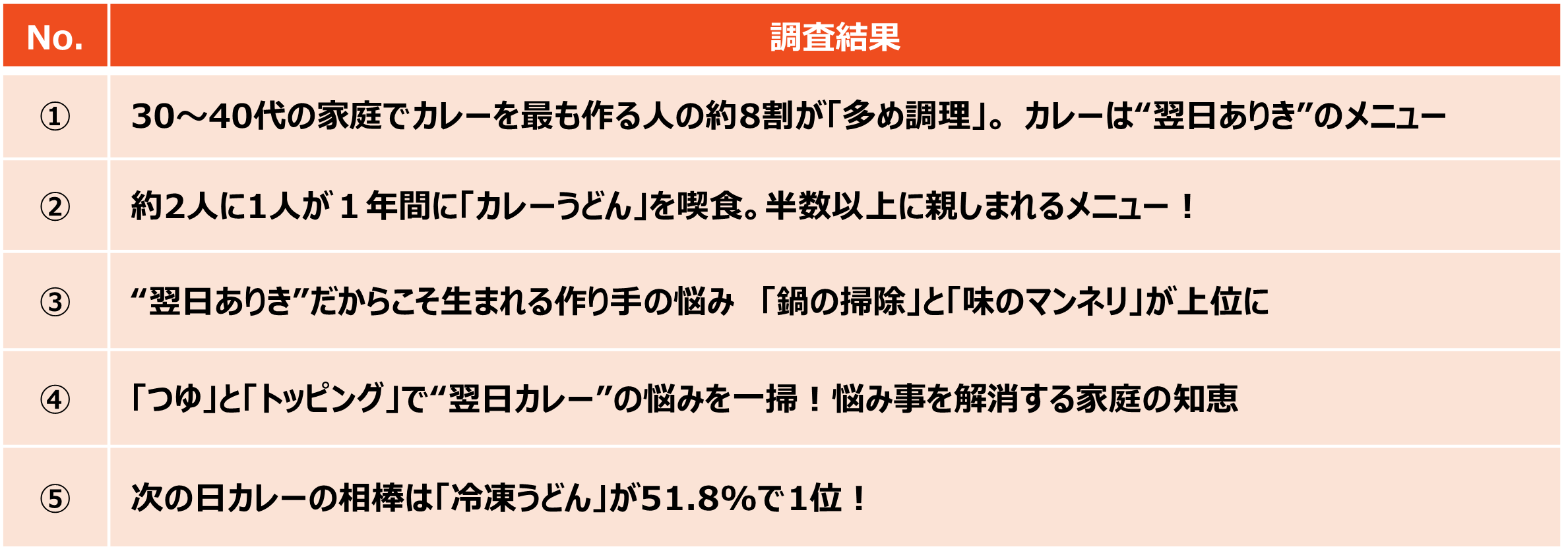 こうした結果から、多忙な共働き世帯においてカレーは、単なる一食の献立にとどまらず、翌日の家事負担を軽減することを意識した“翌日ありき”のメニューとして活用されている様子がうかがえます。