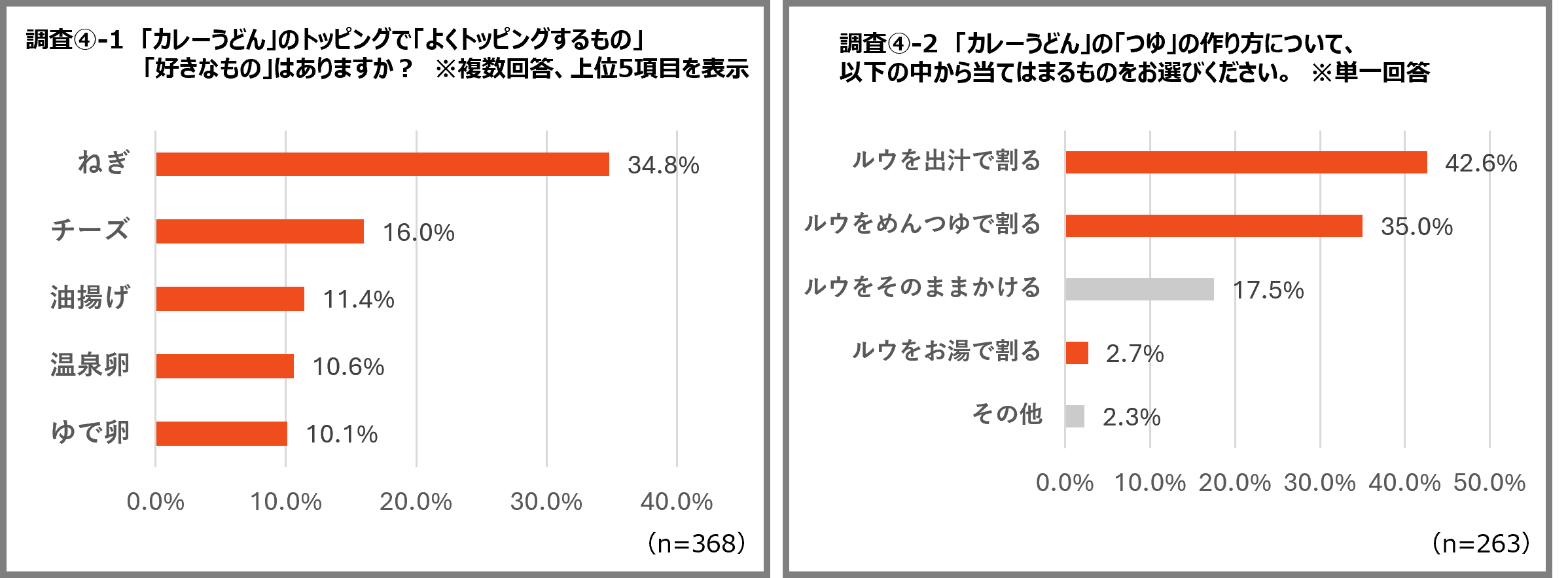 ・調査結果④-2:368名の中から2日目以降のアレンジで「カレーうどん」が好きと回答した人 263名が対象