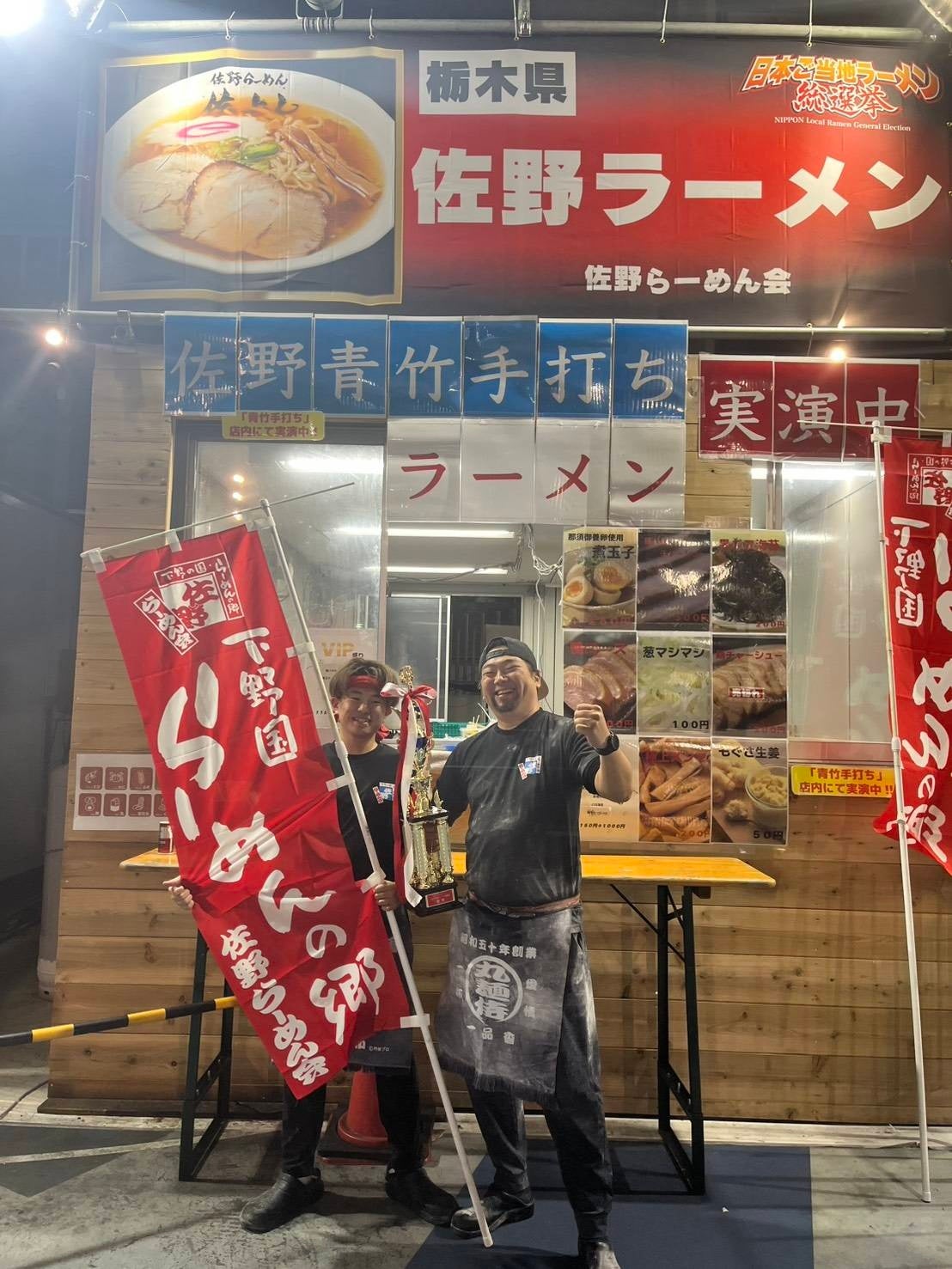 今や日本の重要な観光資源となったラーメン。国内には150種類以上もの「ご当地 ラーメン」が存在すると言われますが「日本ご当地ラーメン総選挙」は、日本ラーメ ン協会などで組織する実行委員会が主催で、その頂点を決めるイベントとして、毎年 都内で開催されており、今年が3年目となります。 このイベントへのエントリーは、個人店舗としてからでも、地域の組合としてから でも可能ですが、佐藤さんは、移住した第二のふるさと佐野市の「佐野らーめん会」 の代表として、「絶対に負けられない3度目の戦い」に、息子の威(たける)さんと親 子二人三脚で臨みました。