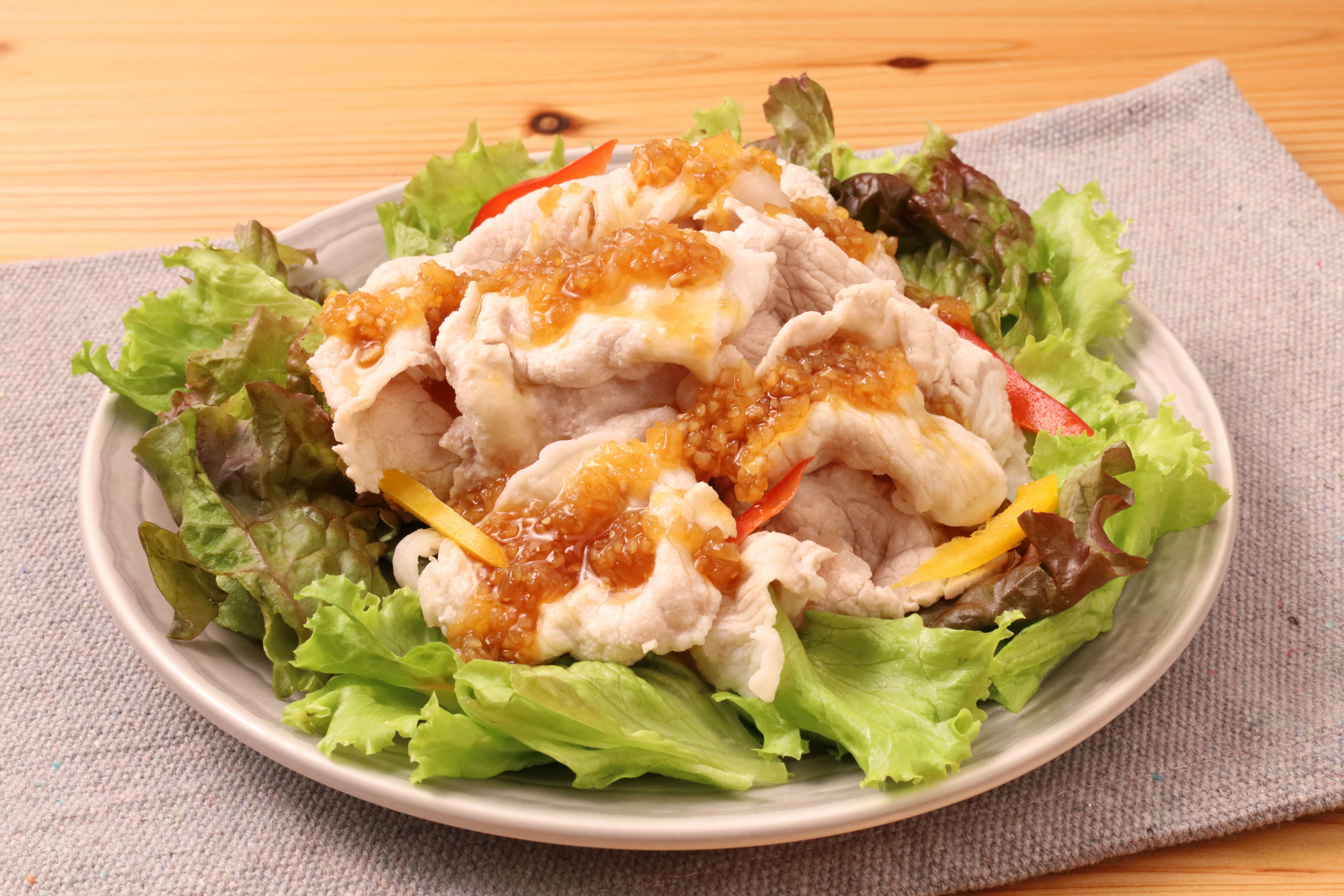 たっぷりのたまねぎに、生姜やにんにくなどの香味野菜とこだわりのしょうゆ、米酢と黒酢を合わせました。さわやかな酸味とコクがあり、ごはんによく合う味わいです。