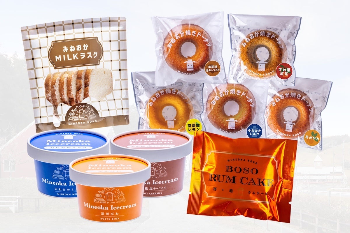 株式会社ちば南房総(本社:千葉県南房総市)は、地域の生乳や果実、加工技術、道の駅という流通拠点を活用し、みねおかアイスクリーム/みねおか焼きドーナツ/みねおかMILKラスク/BOSOラムケーキの4商品を、2026年1月23日(金)より南房総市内3つの道の駅で同時発売します。