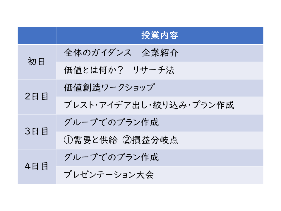 ・「価値を生み出す」ためのブレインストーミングを行い、アイデアを考え、提案書を作成する。