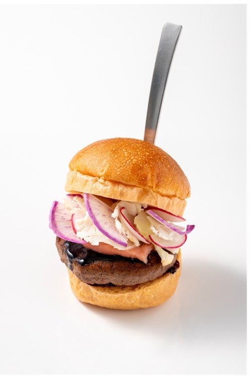 信州牛パティと冬の根菜をたっぷりサンドした食べ応えのあるスライダーバーガー