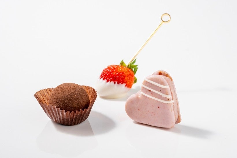 (左)トリュフチョコボール(中)フレッシュイチゴとホワイトチョコ(右)ハートのクッキーサンド