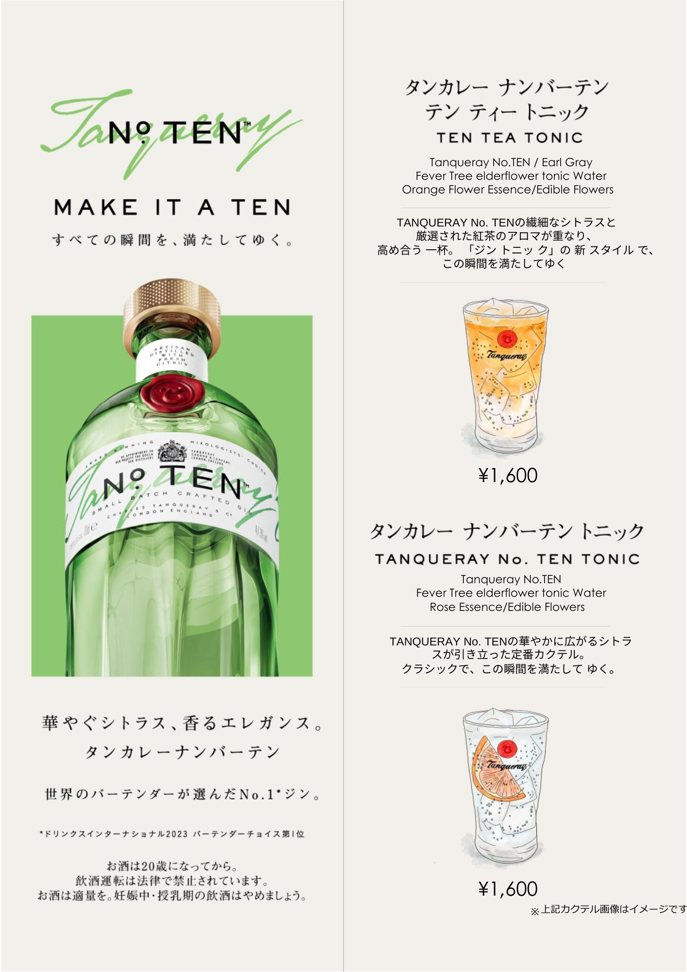 本コラボレーションでは、TANQUERAY No. TENの魅力を最大限に引き出す2種のカクテルをご用意しました。
