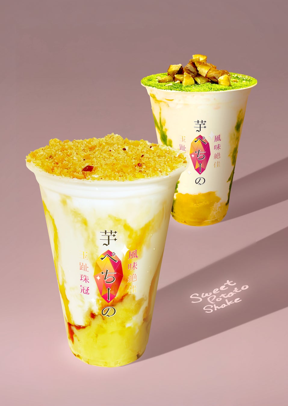 千葉の素材がおいしく響き合う芋ぺちーの。香取市の焼き芋で作る濃密シェイクに、千葉落花生のカリッと香ばしいアクセント。