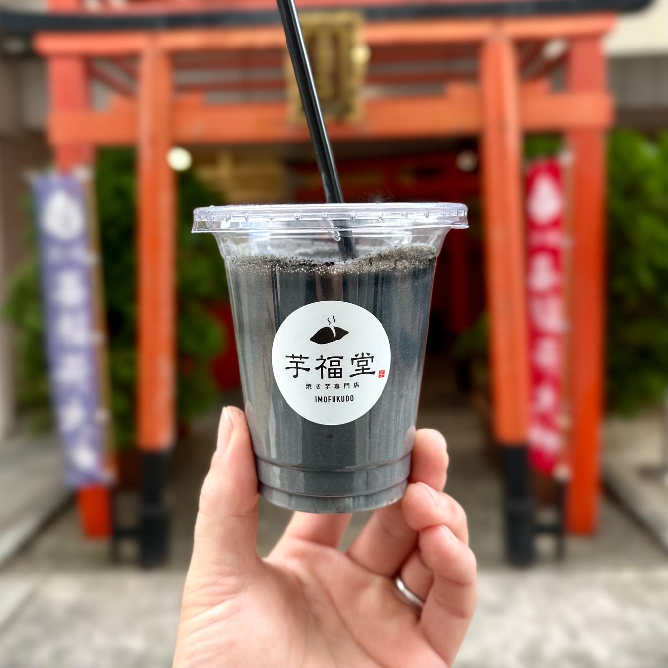 さつまいも博限定!人気の「飲む焼き芋」に竹炭をプラス。見た目も味も黒く進化した特別バージョンです!