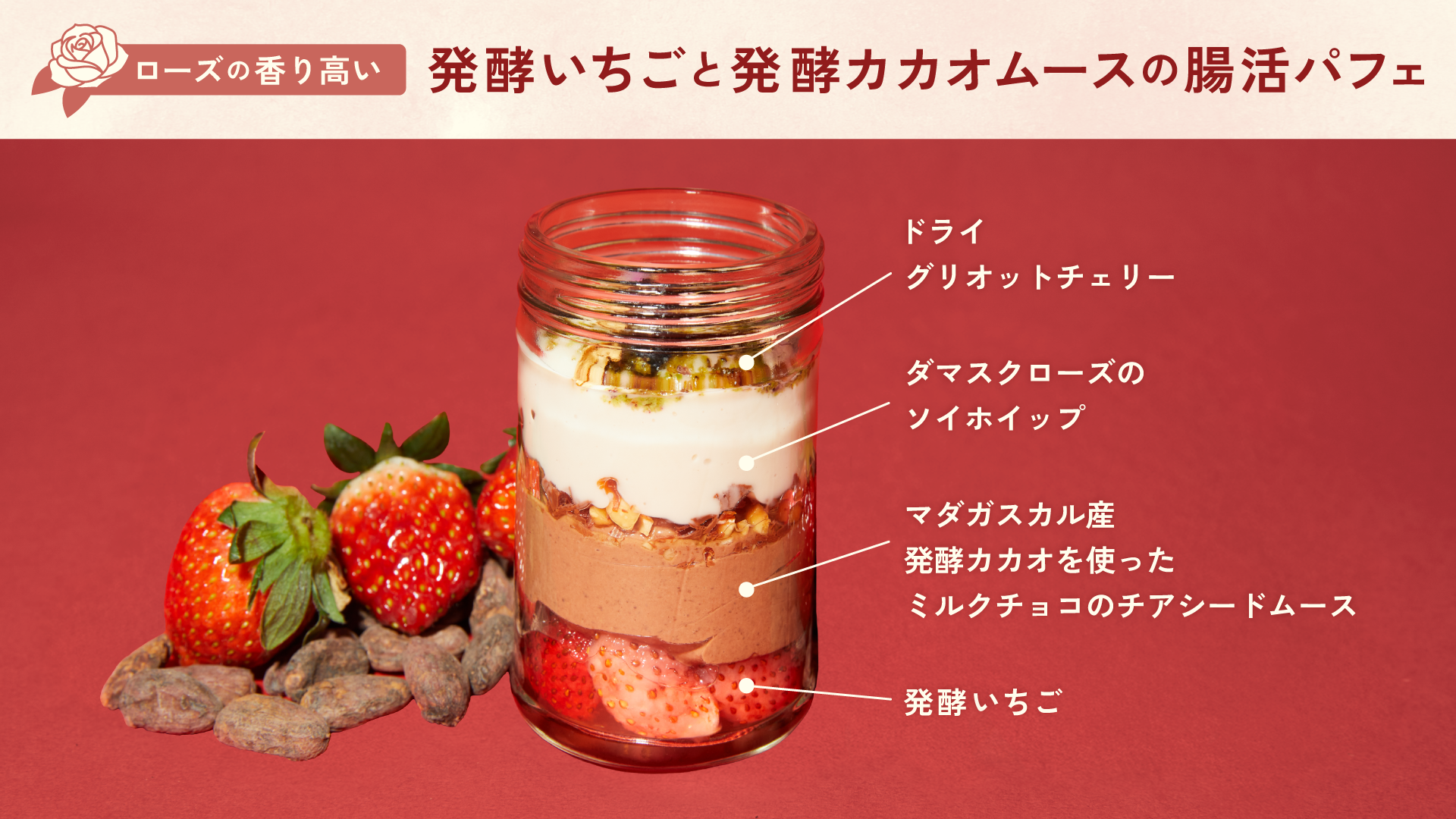 発酵いちごと発酵カカオムースの腸活フルーツパフェ