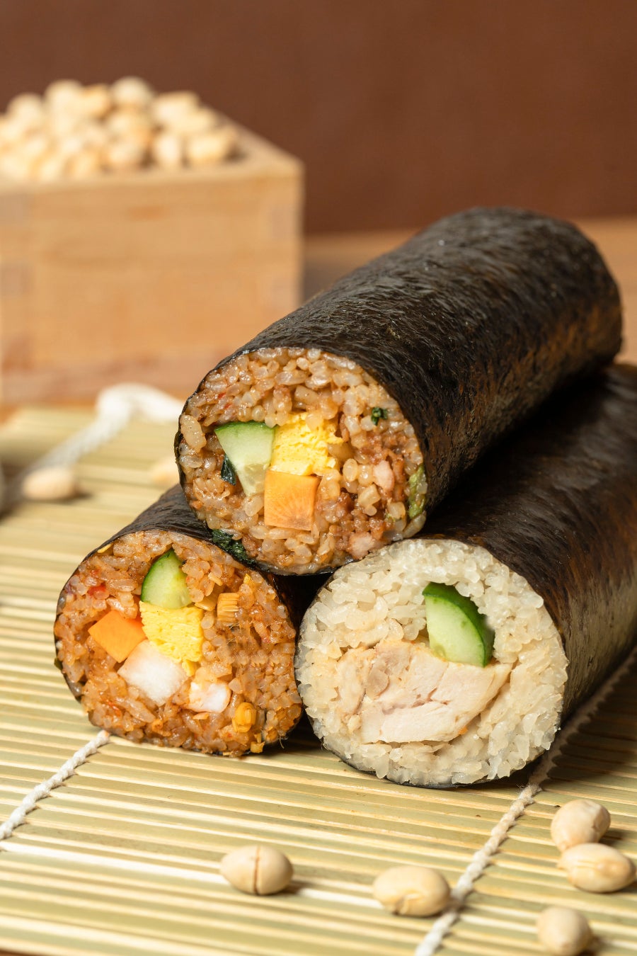昨年ご好評を頂いた「ガパオ巻き寿司」や「トムヤムクン巻き寿司」に加え、今年は新たに「カオマンガイ巻き寿司」をご提供します。この「カオマンガイ巻き寿司」は、タイの屋台や食堂で広く親しまれている代表的な一皿を、恵方巻スタイルにアレンジした一品です。鶏肉の旨みを余すことなく引き出したカオマンガイライスに、ハーブとスパイスを効かせた、タイ出身のシェフ・レイ特製の甘辛ソースを合わせることで、奥行きのある味わいが広がります。