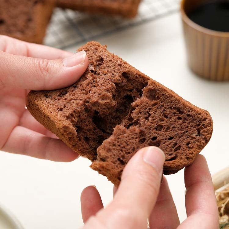 本製品は、北海道産小麦の豊かな風味をベースに、メレンゲをしっかりと立てることで実現した「しっとりふわふわ」な食感が魅力のシフォンケーキです。ミルク感たっぷりのチョコレートとココアを練り込んだ生地の中には、細かく刻んだチョコレートを丁寧に忍ばせています。