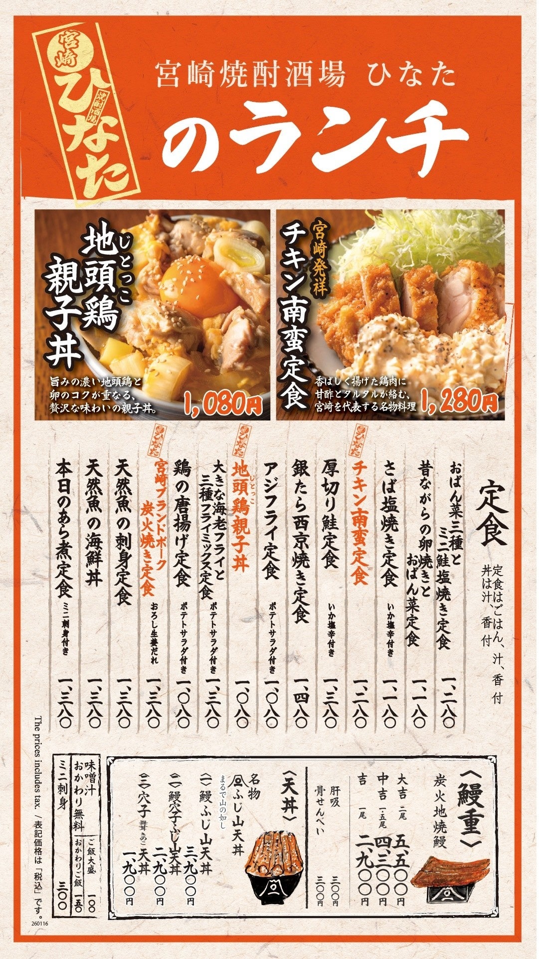 みやざき地頭鶏・・・ランチでは親子丼、ディナーでは鶏すき、炭火焼きで提供します。