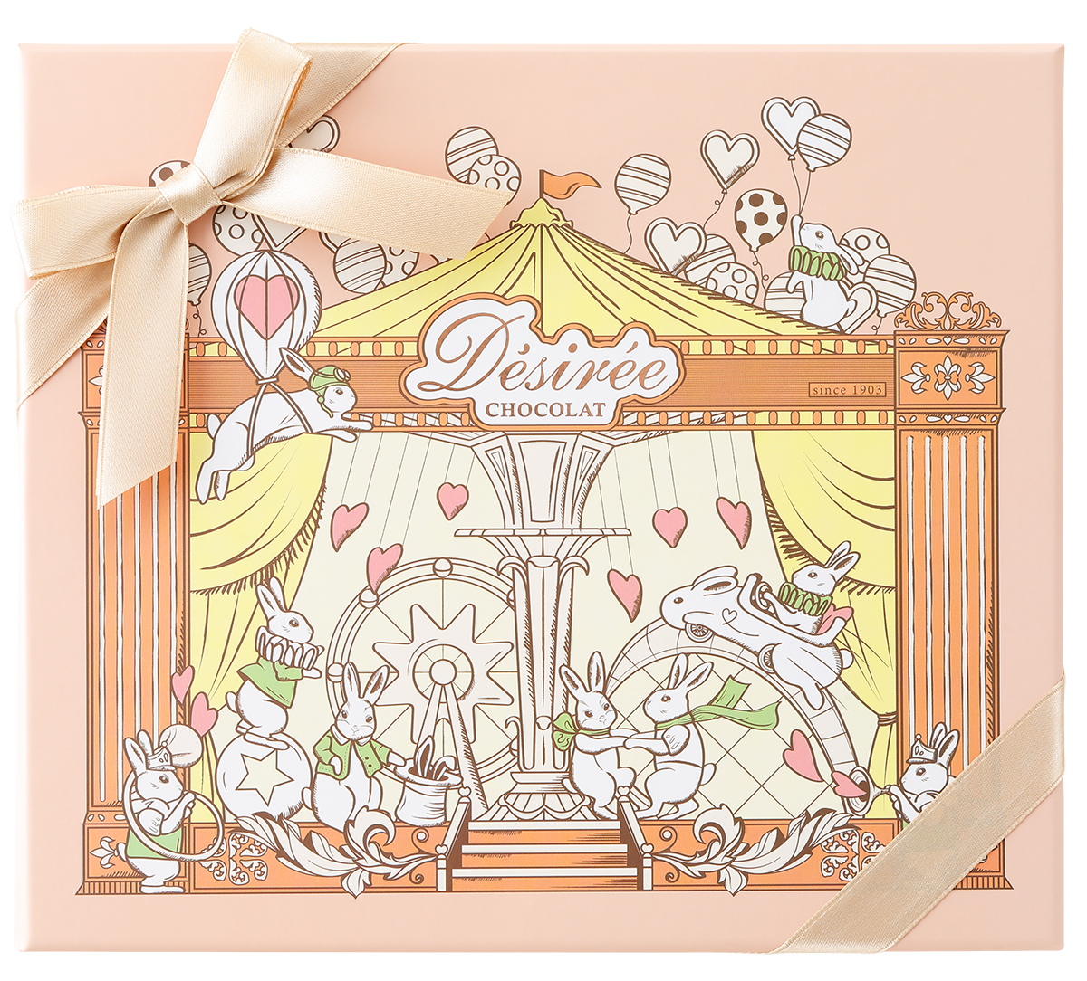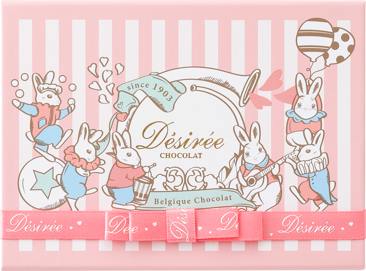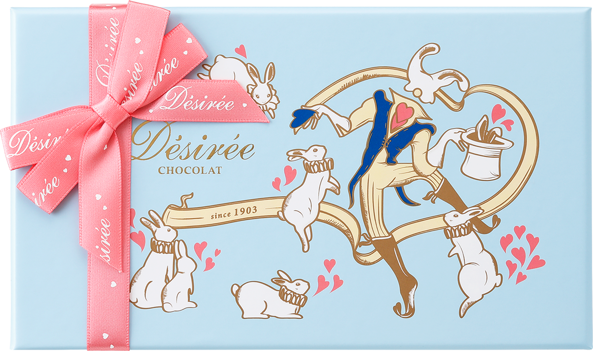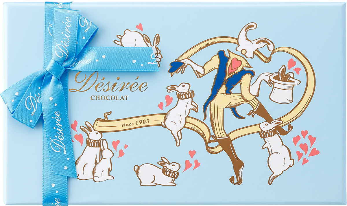 バレンタイン・ホワイトデーを通して、女性が心から楽しめるよう願いを込めたパッケージデザイン。シンボルのウサギにはマダム・デジレーの伝統的なレシピがどの時代でも飛躍し、受け継がれ続けてほしいという願いが込められています。