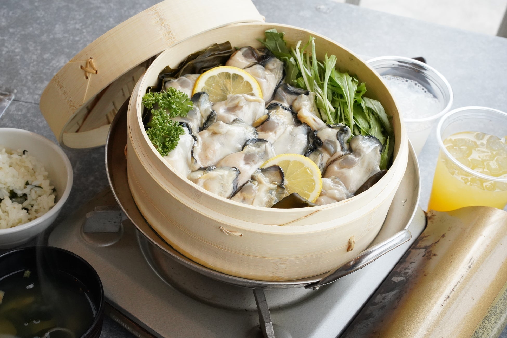 牡蠣小屋といえば“焼き”のイメージが強い中、【ウッドデザインパーク野間】が提案するのは”蒸し”