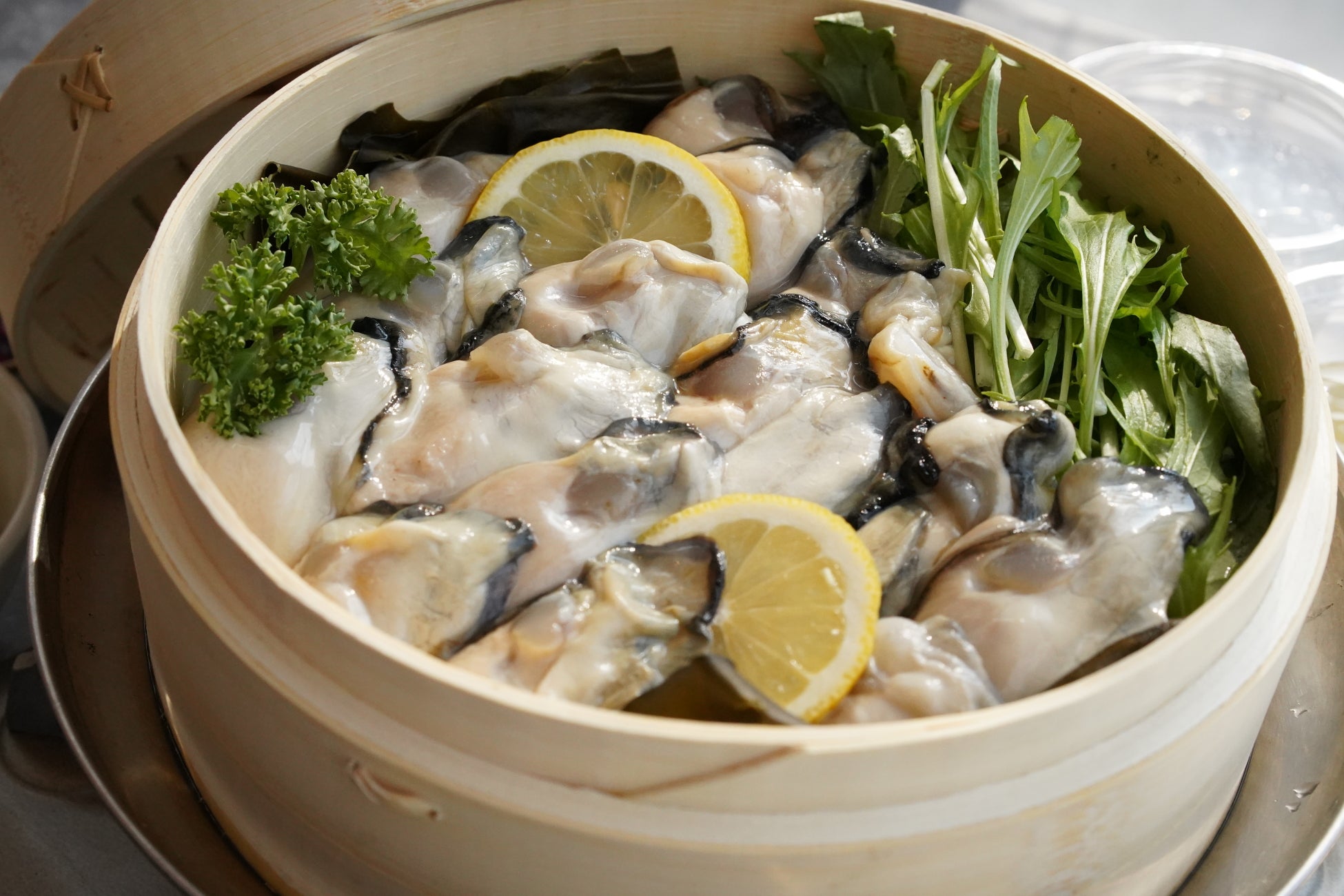 蒸すからこそ、牡蠣が“縮みにくい”ふっくら食感で、牡蠣の甘みがストレートに感じられます。