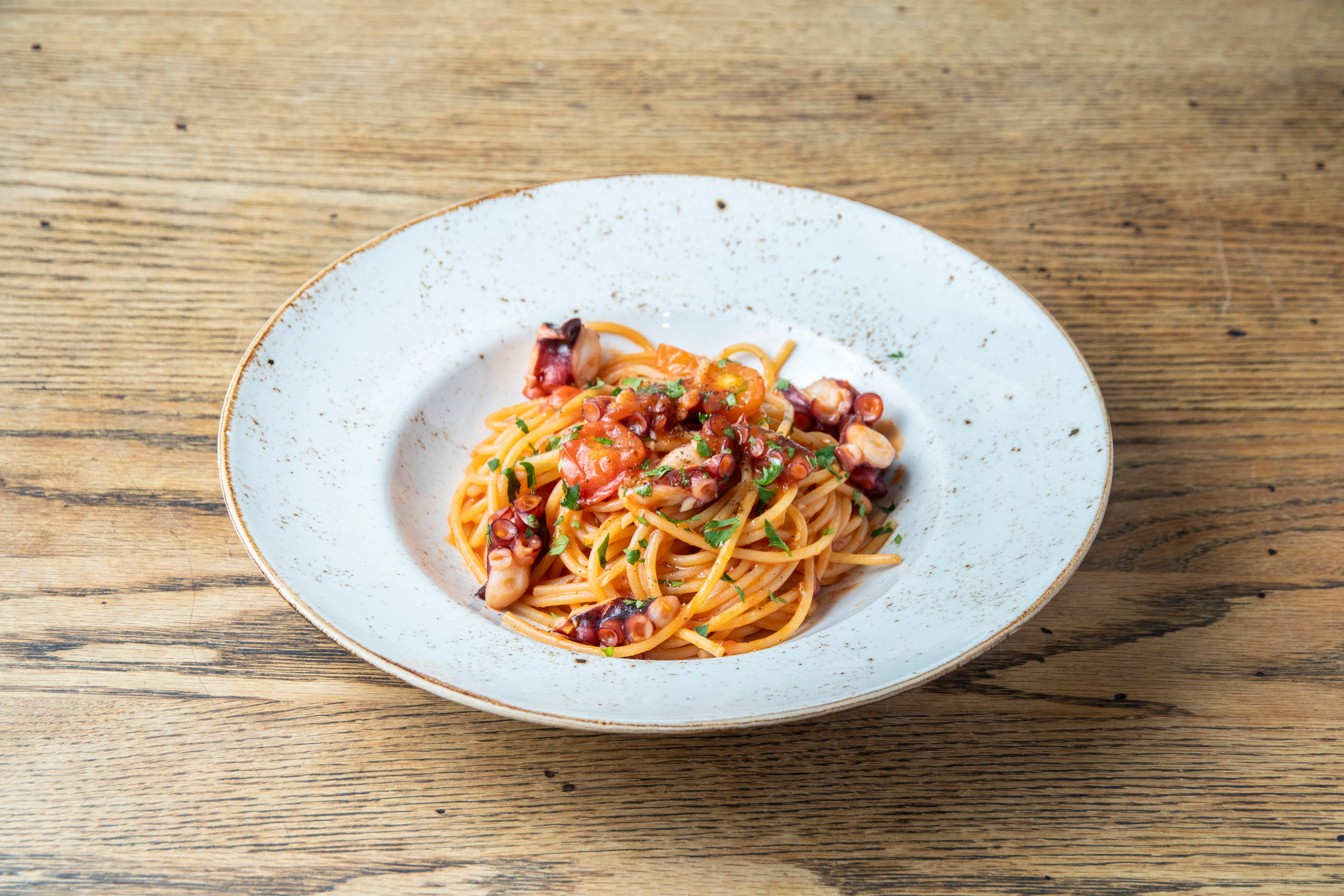 【メニュー名】福島県産柳ダコのスパゲッティアラビアータ