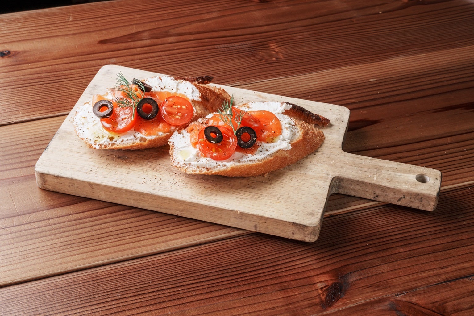 【メニュー名】青森産サーモンスモークと自家製リコッタチーズのブルスケッタ