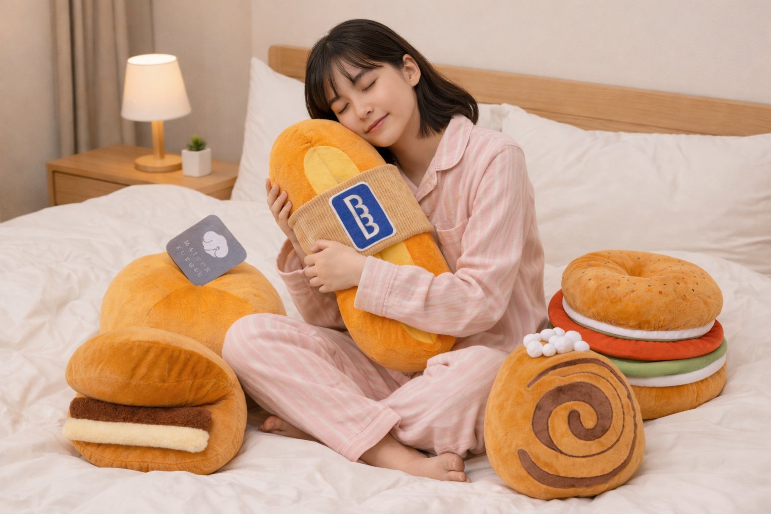 看板商品のMAGUROが抱き枕になって嬉しいです。うちの店のイメージに合うデザインで、インテリアにもなりそうなかわいい感じに仕上がりました!パン好きさんやベーグル好きさんにぜひ生活に取り入れてほしいです。