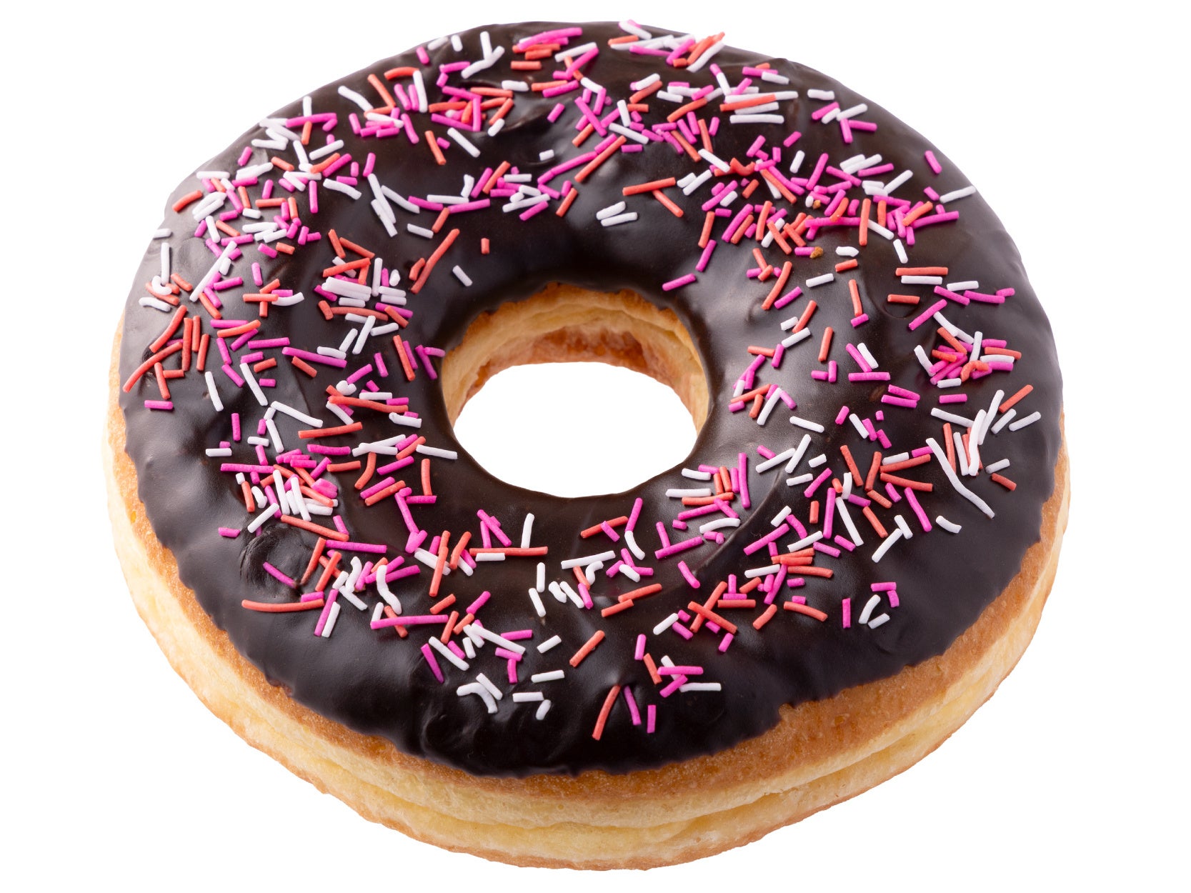ふんわり食感のドーナツに、鮮やかなピンクのアイシングとカラフルなスプリンクルをトッピングしました。