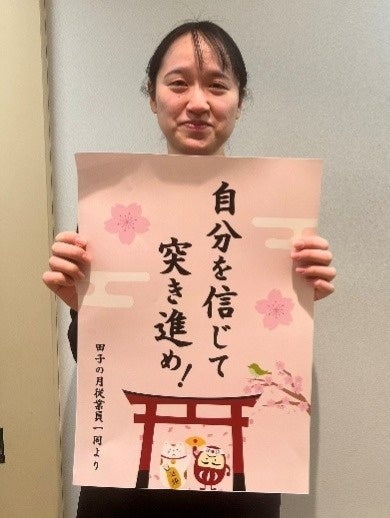 同時に、直営店舗では、応援メッセージが書かれた店頭ポップや、スタッフが付ける「頑張る受験生を応援します!」バッジで、受験生の皆さんを応援しています。