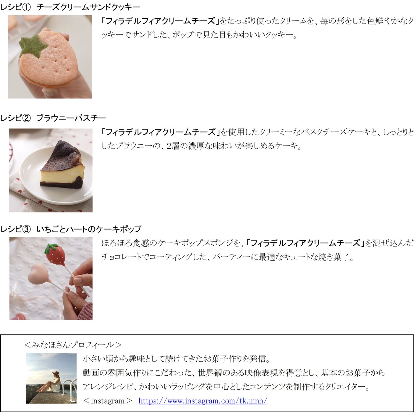 ■みなほさん考案「フィラデルフィアクリームチーズ」を使用したスイーツレシピ