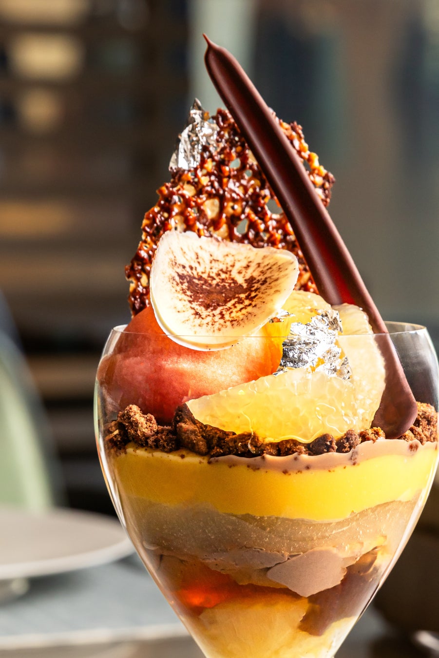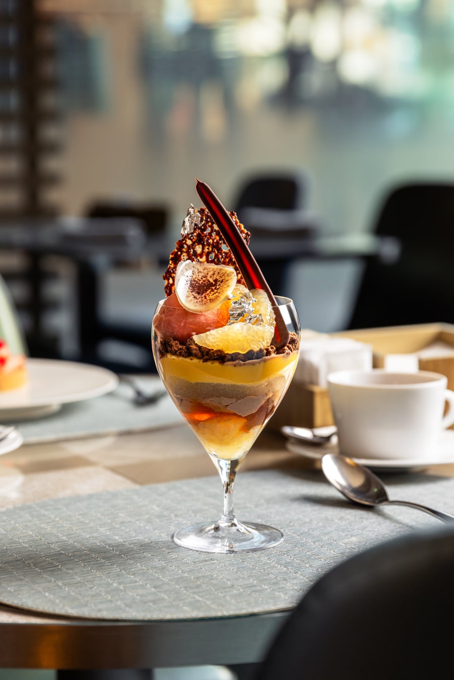 日向夏の爽やかさ、チョコレートの豊かなコク、オレンジと紅茶の香りが重なり合う、2月だけの洗練されたパフェ。ぜひアルマーニ / カフェでお愉しみください。
