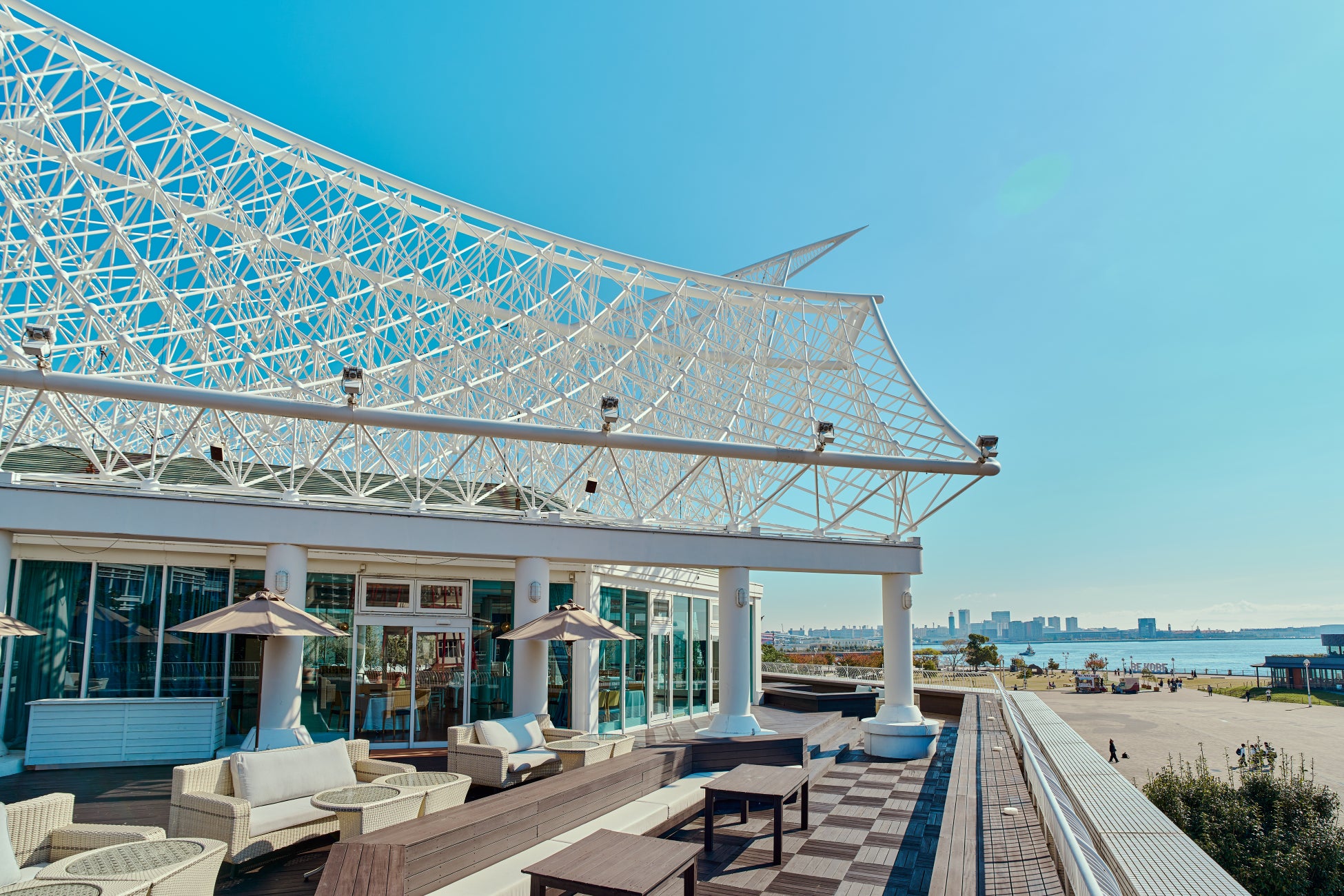 船の帆と波をモチーフにしたランドマーク・神戸海洋博物館の2階に位置する「オーシャンプレイス」。