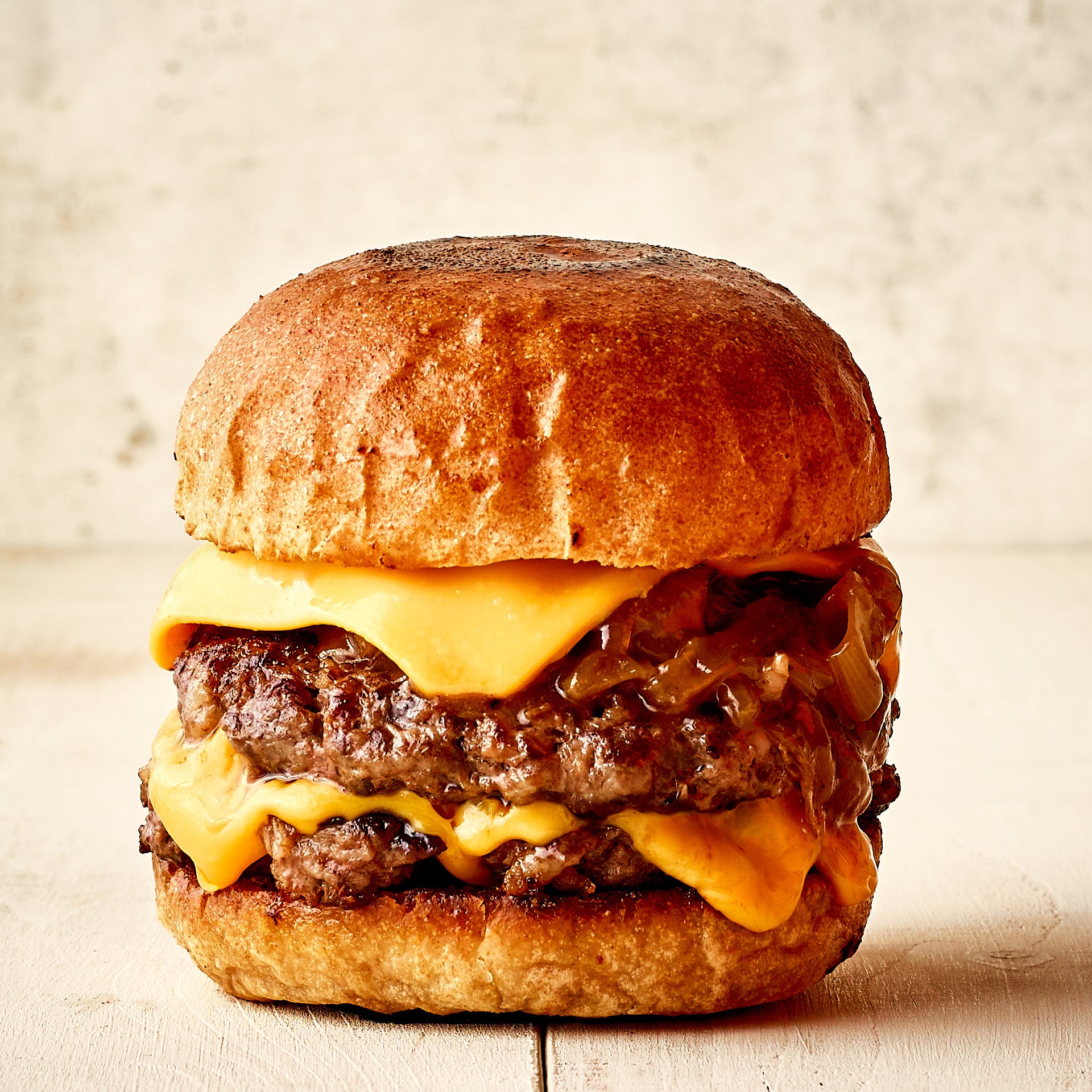 パティから出た肉汁を半分に切った断面に吸わせて、半分に切った断面を熱々の肉汁で2度焼き。