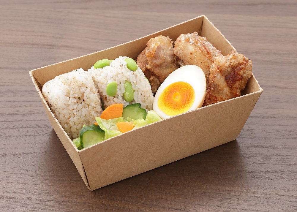 キッチンカーでも大人気!「浜のうまだし」を混ぜ込んだおむすびと、あごだしから揚げがセットになった、おすすめが詰まったお弁当です。