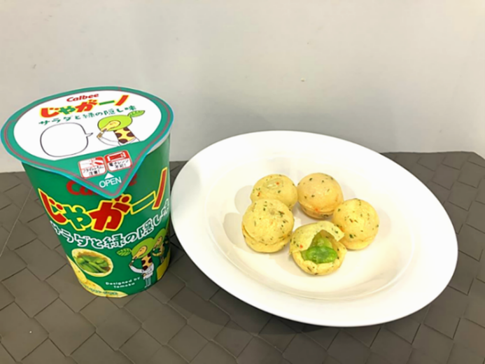 ・選定理由: 「テーマに合っている」「斬新である」(一部抜粋)などが評価され、最終審査に進出。「じゃがりこが丸い形になっている」「食べたらミーノが出てくる」という2つの驚きの仕掛けがカルビー社員の心をつかみ、最優秀賞の受賞となりました。