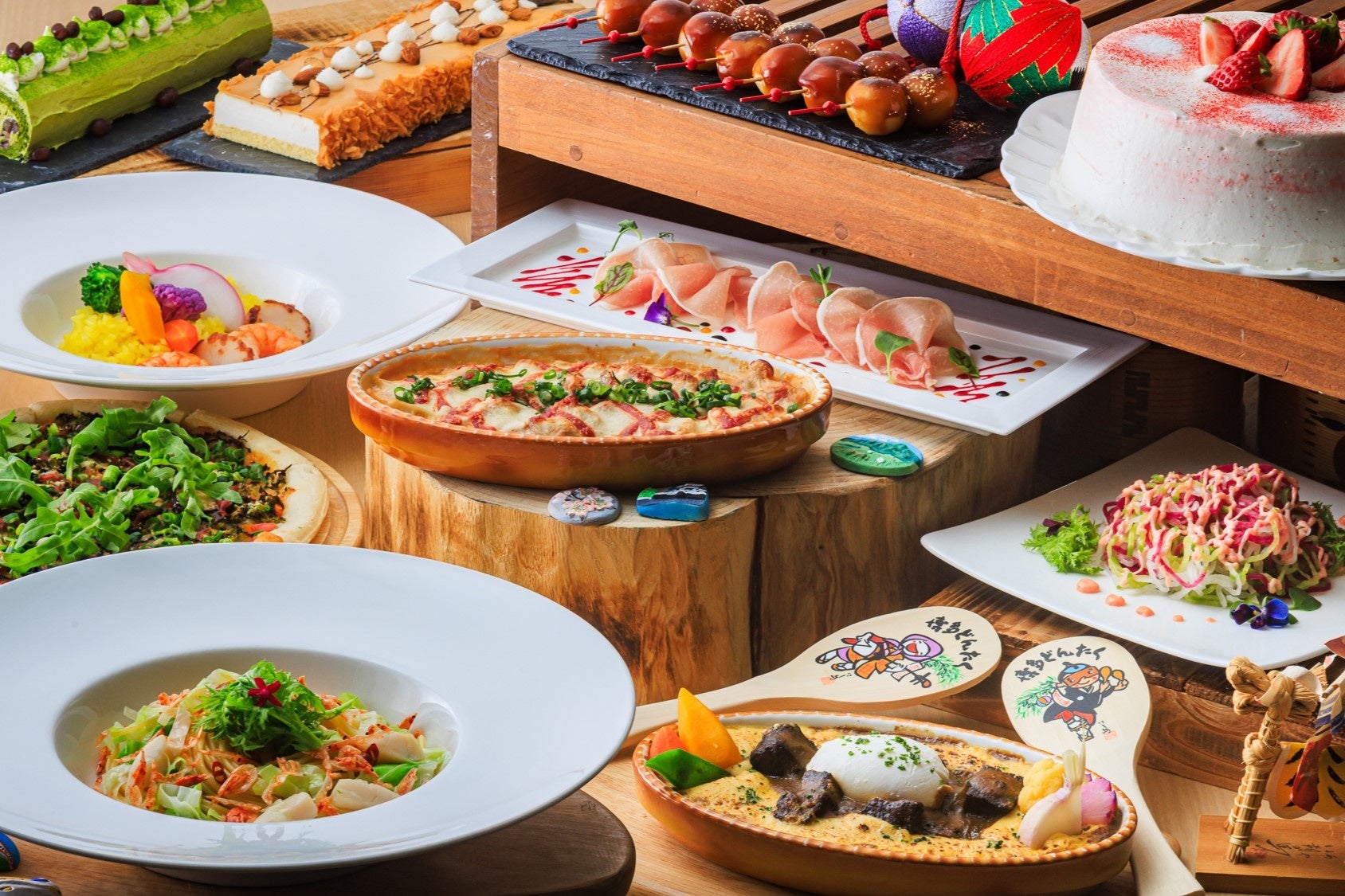 福岡県産の食材や郷土料理、福岡名物を、S.DININGらしい味わいに仕立てた“うまか・あまか”セミブッフェ。
