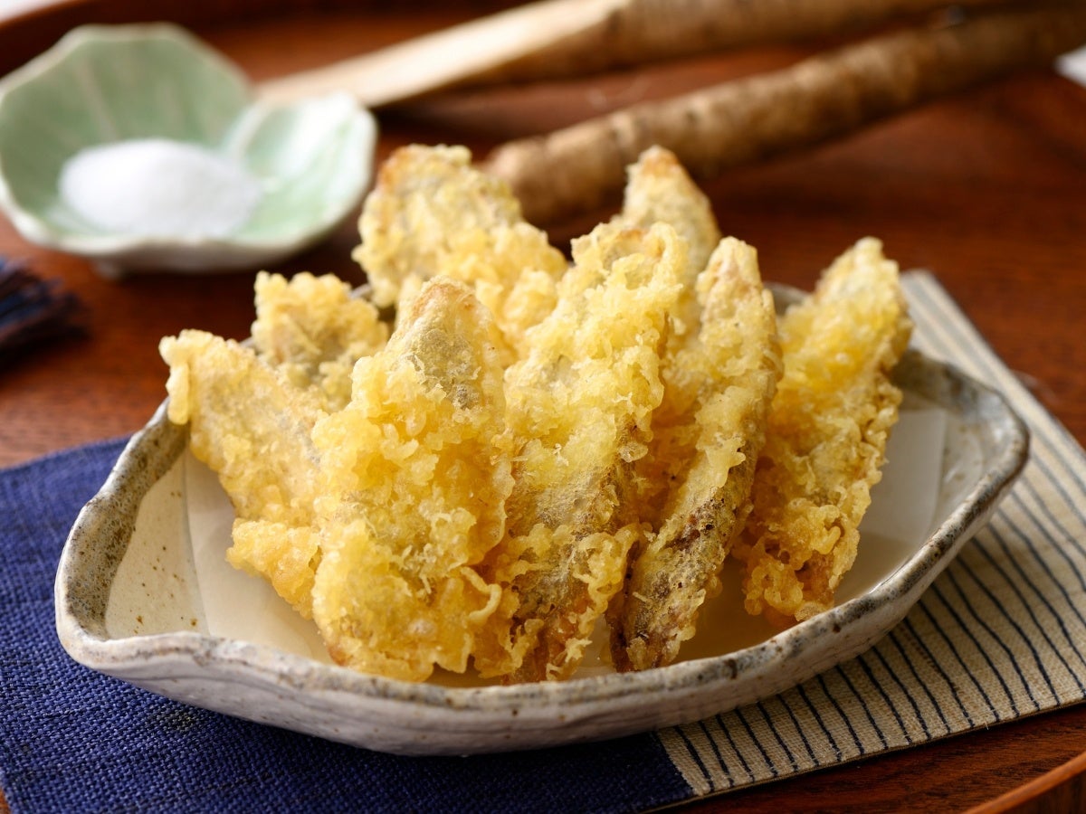 香りや風味が良く、シャキシャキとした食感が特徴の青森県産ごぼうを『天婦羅』にしてご提供。揚げることで食材のうまみが閉じ込められ、衣と一体化した食感が楽しめます。