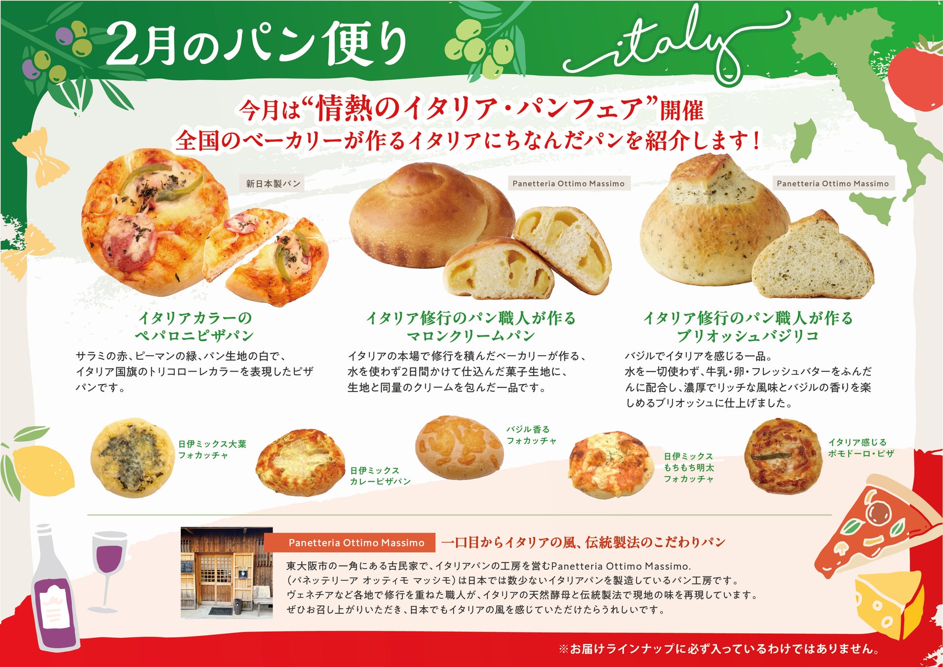 期間中は、以下のようなイタリアをイメージしたパンを中心にセレクトし、オフィスへお届けします。