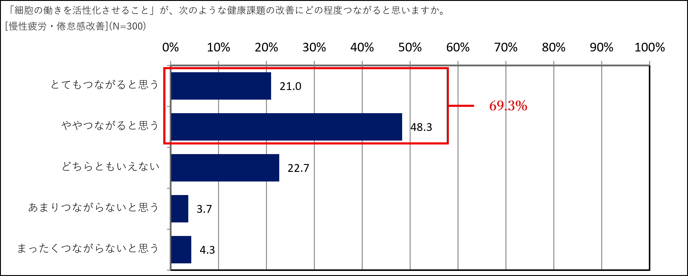 • 「細胞の働きを活性化させること」が、慢性疲労・倦怠感改善に繋がると考える医師は69.3%