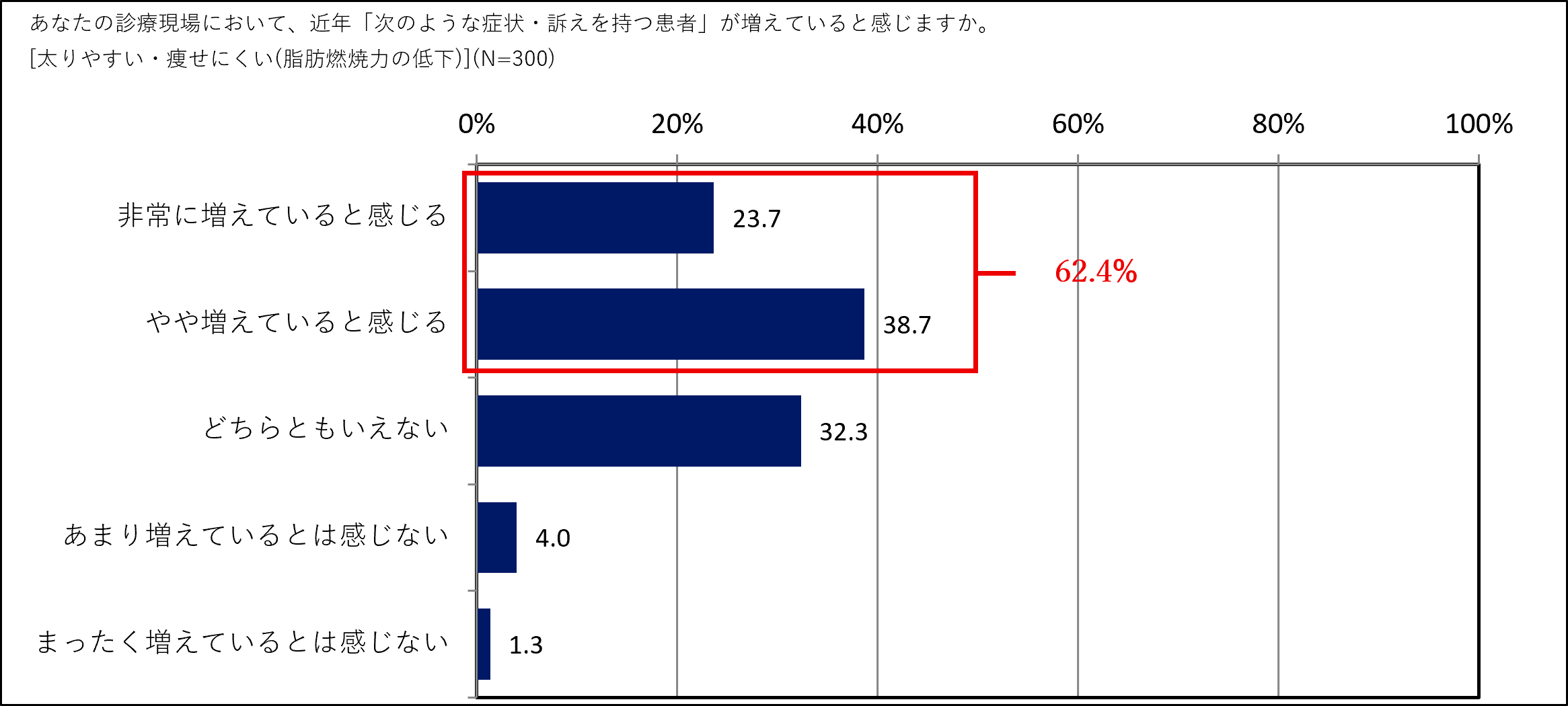 【内科医・産業医300人調査で明らかに】6割以上の医師が、近年「太りやすく」「疲れやすい」患者の増加を実感